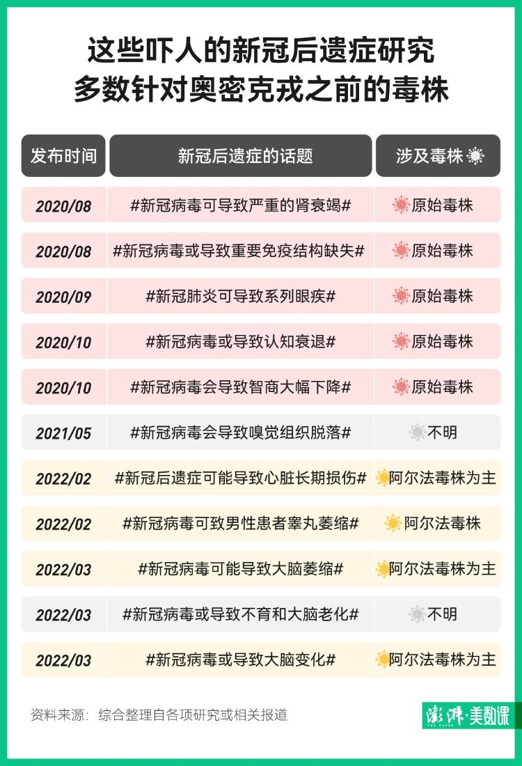 但需要強(qiáng)調(diào)的是,這些新冠后遺癥的研究,針對的是原始毒株、阿爾法毒株等早期新冠毒株,奧密克戎會帶來哪些后遺癥,還有待觀察。