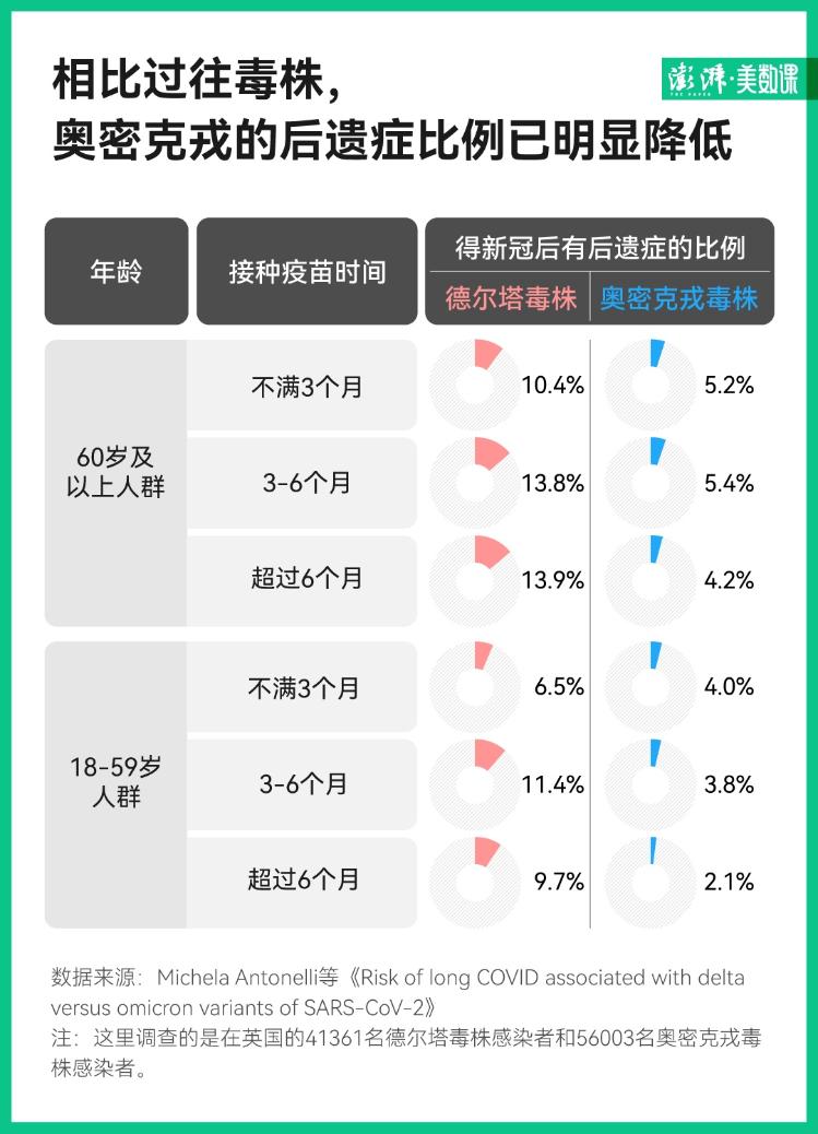 而且有研究顯示,在接種疫苗后,奧密克戎毒株后遺癥發(fā)生率僅是德爾塔毒株的 50% 以下。