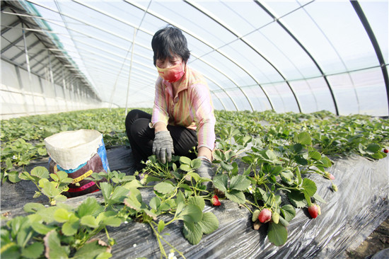 3月6日,在市開發(fā)區(qū)佃戶屯辦事處金河岸生態(tài)采摘園內(nèi),果農(nóng)正在為草莓掐葉打頂、疏花疏果,進行細致管理,保證草莓果實質(zhì)量。據(jù)介紹,該生態(tài)園種植的草莓品種為甜寶,是從日本引進的優(yōu)質(zhì)品種,果實軟,風味佳,價格雖然比普通品種高出1倍還多,但在市場上仍很受歡迎。按今年的市場價格,一個1.5畝的草莓大棚收入可達5萬元左右。記者 周東倫 攝