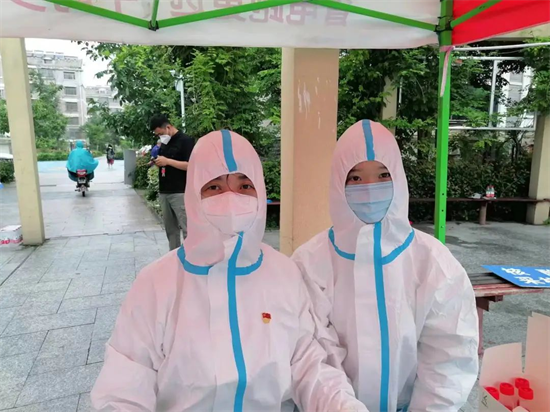單縣醫(yī)務(wù)工作者郭素娟,家住園藝街道中央花園。7月28日,在單縣出現(xiàn)一例確診病例后,她義無反顧地加入到戰(zhàn)疫隊伍中,負責核酸采樣。與以往不同的是,這次同行的,還有女兒于嘉寧。于嘉寧現(xiàn)就讀齊魯醫(yī)藥學院護理專業(yè)一年級,正在暑假期間的她主動申請加入志愿者隊伍,在核酸檢測現(xiàn)場為群眾做現(xiàn)場指引、現(xiàn)場維護?!按蠹艺埍3职踩嚯x,提前打開二維碼,做完核酸不要逗留?!焙唵蔚膸拙湓捦枰貜秃芏啾椋瑨叽a、維持秩序,喊到嗓子干啞,滿頭大汗,她絲毫不感覺辛苦——志愿者那一顆熾熱的心給了她無比強大的能量。