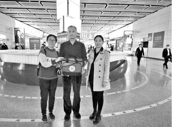 其間,孫華也接到了省紅十字會(huì)的通知:由于第二次采集是臨時(shí)進(jìn)行的,物流不能及時(shí)安排配送,為了保證當(dāng)天采集的造血干細(xì)胞能夠及時(shí)給患者輸注,浙江醫(yī)科大第一附院骨髓移植中心的邱醫(yī)生赴濟(jì)來拿造血干細(xì)胞血漿混懸液。而為了節(jié)省來回奔波的時(shí)間,采集結(jié)束后,由她趕去火車站履行交接。