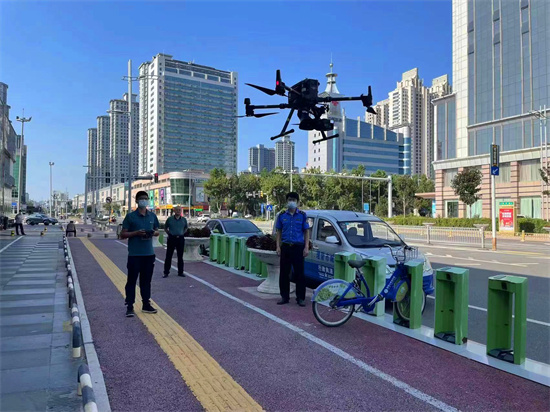 “請(qǐng)您佩戴口罩,保持一米距離,謝謝配合?!?月6日,在菏澤火車站廣場(chǎng),一架無(wú)人機(jī)在高空巡查時(shí),發(fā)現(xiàn)有2人未戴口罩,于是進(jìn)行遠(yuǎn)程喊話。市城市管理局成立了一支無(wú)人機(jī)疫情防控宣傳組,每天對(duì)城區(qū)主要路段和重點(diǎn)公共區(qū)域進(jìn)行不間斷巡查并語(yǔ)音宣傳防疫知識(shí),起到明顯效果。記者 孔博 通訊員 郭鋼錘 攝