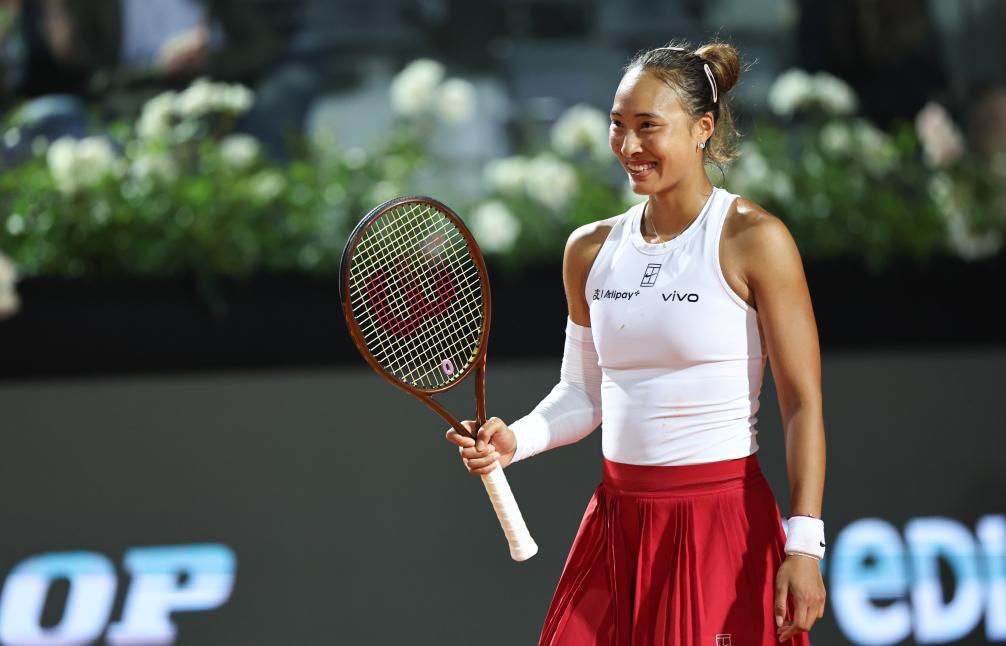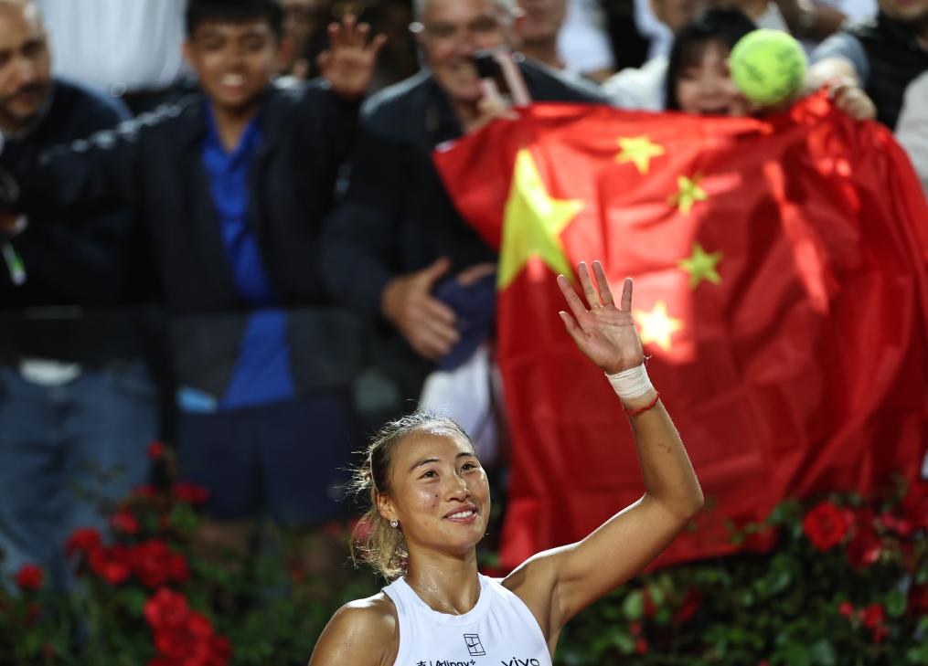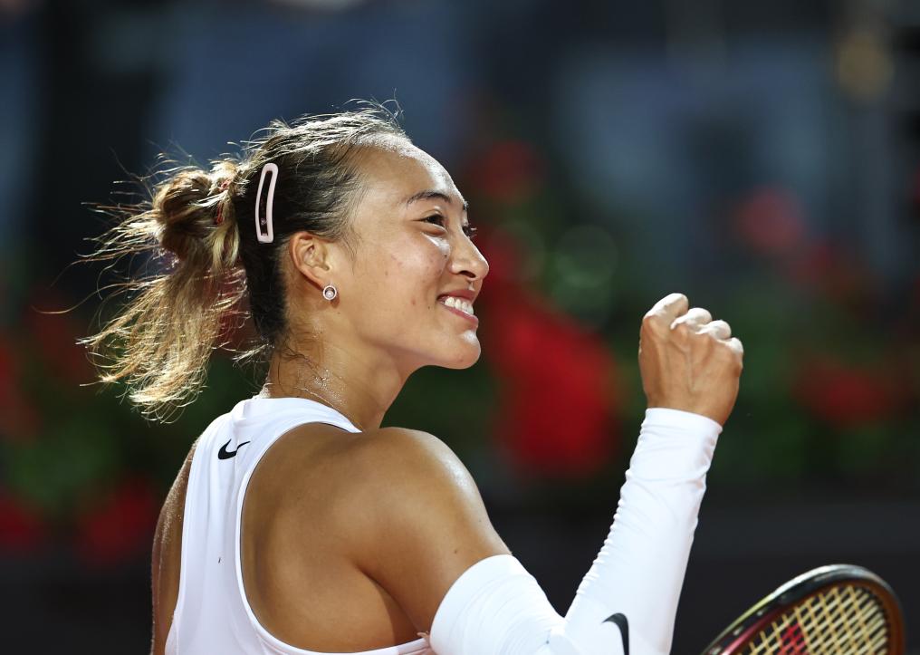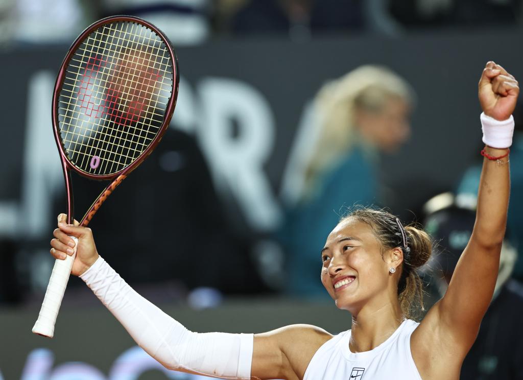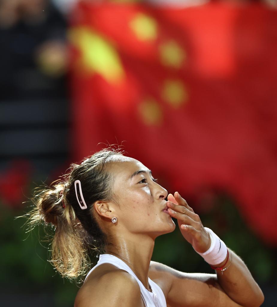 當(dāng)日,在意大利羅馬舉行的WTA1000網(wǎng)球羅馬站女單四分之一決賽中,中國選手鄭欽文2比0戰(zhàn)勝白俄羅斯選手薩巴倫卡,晉級半決賽。
