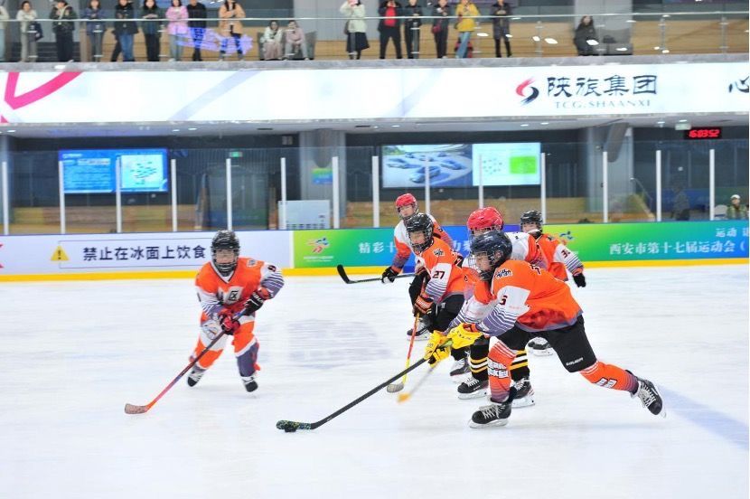 圖為今年西安市運(yùn)動(dòng)會冰球比賽場景