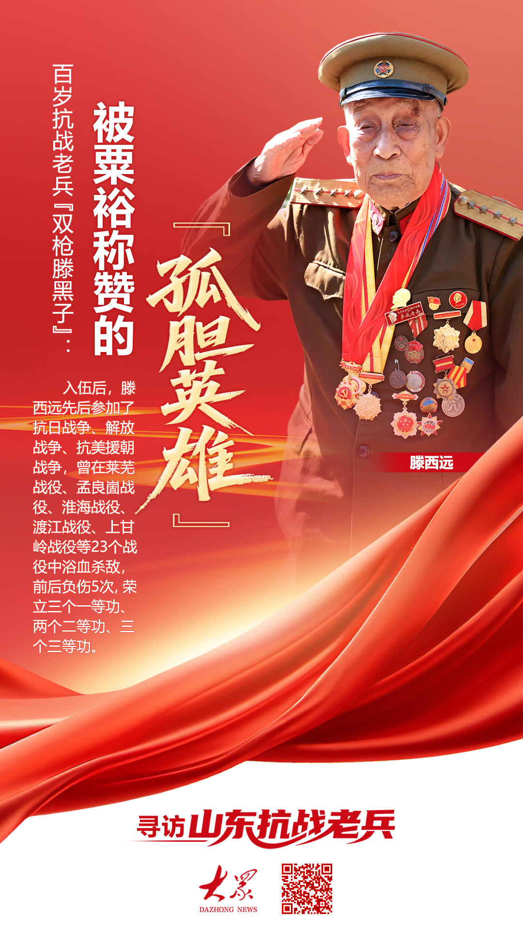 在慶功大會(huì)上,滕西遠(yuǎn)再一次被授予一等功,粟裕親手將槍給他掛到了身上,贊道:“真是個(gè)孤膽英雄?。 睆哪且院?,“雙槍滕黑子”的名號(hào)響徹戰(zhàn)場(chǎng)。