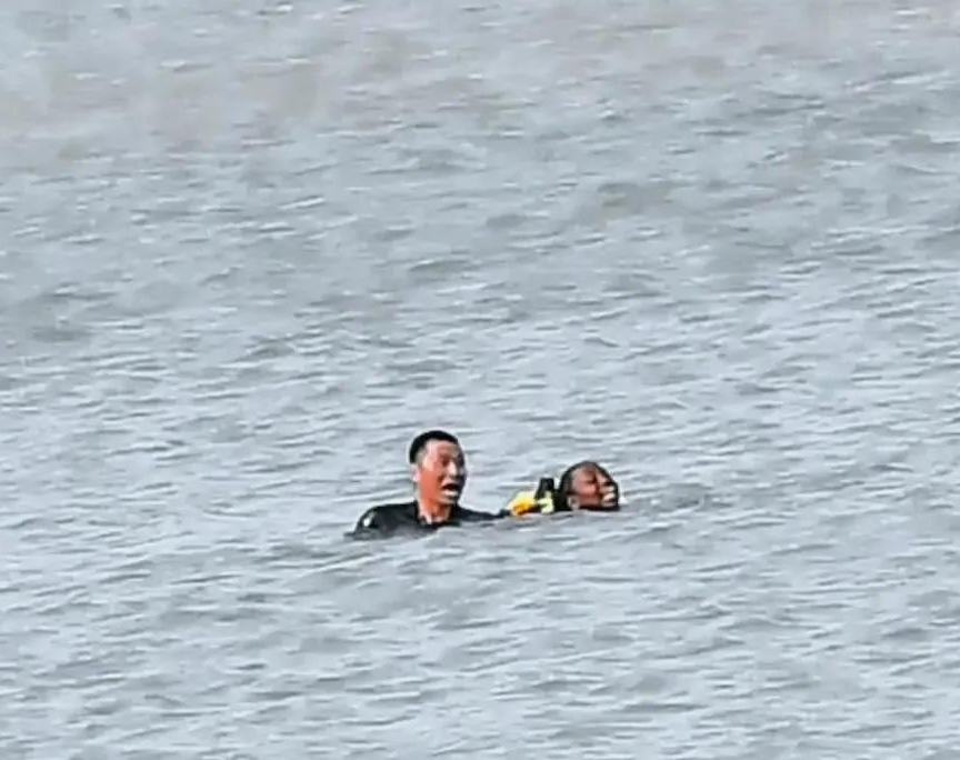 6月15日,是個(gè)周日,恰逢父親節(jié)。下午時(shí)分,一名坦桑尼亞民眾在達(dá)累斯薩拉姆市海邊溺水。目擊者拍攝的照片顯示:張軍橋在深水中奮力將落水者向上托舉。