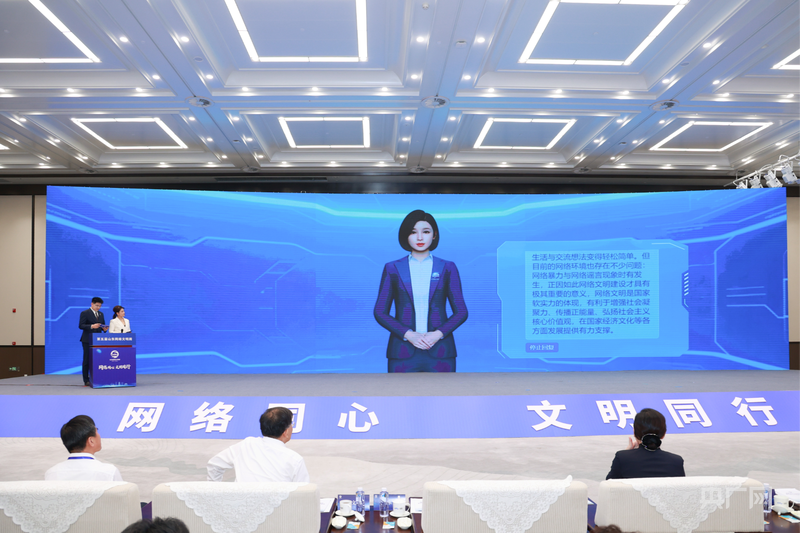 啟動儀式上,山東網(wǎng)絡(luò)文明主題數(shù)字人“文文”首次亮相。這位AI數(shù)字人與啟動儀式主持人互動探討網(wǎng)絡(luò)文明意義,迅速成為現(xiàn)場焦點。