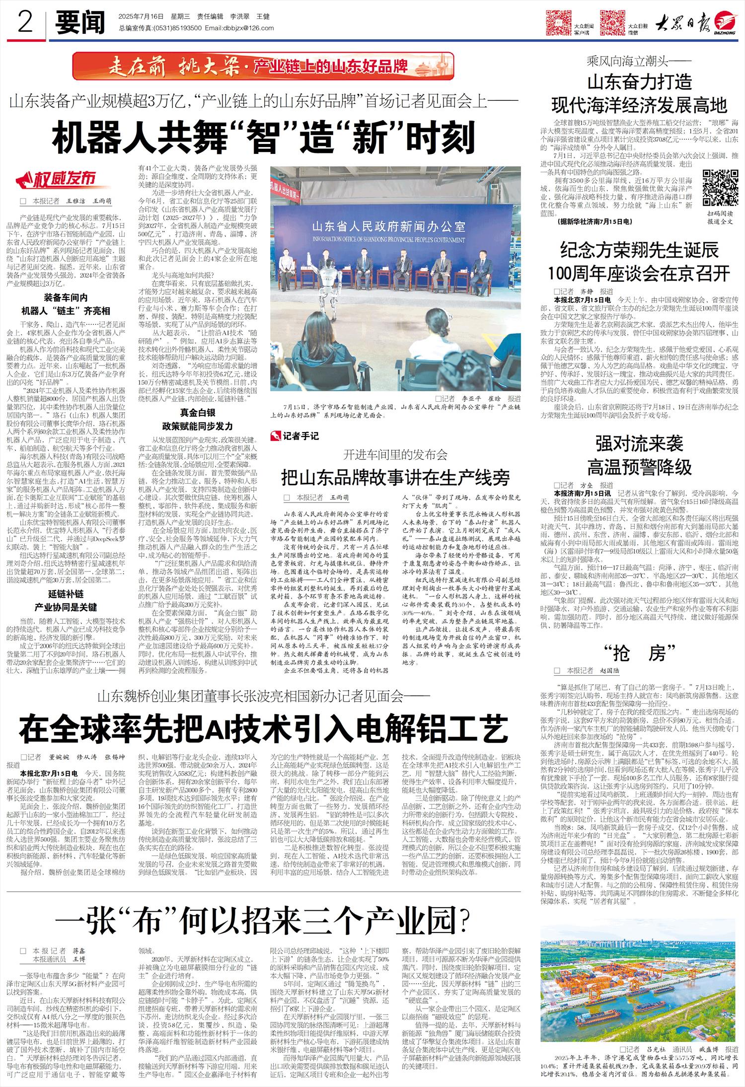 山東省人民政府新聞辦公室舉行的首場“產(chǎn)業(yè)鏈上的山東好品牌”系列現(xiàn)場記者見面會別開生面,舞臺直接搭在了濟寧市珞石智能制造產(chǎn)業(yè)園的裝配車間內(nèi)?! ?/p>