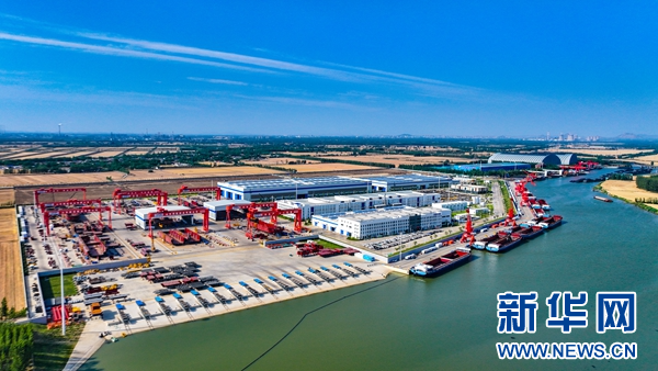 全國首個集研發(fā)設(shè)計、智能制造于一體的綠色化、智能化、現(xiàn)代化、標(biāo)準(zhǔn)化內(nèi)河新能源船舶制造基地——山東新能船業(yè)。(濟(jì)寧市委網(wǎng)信辦供圖)