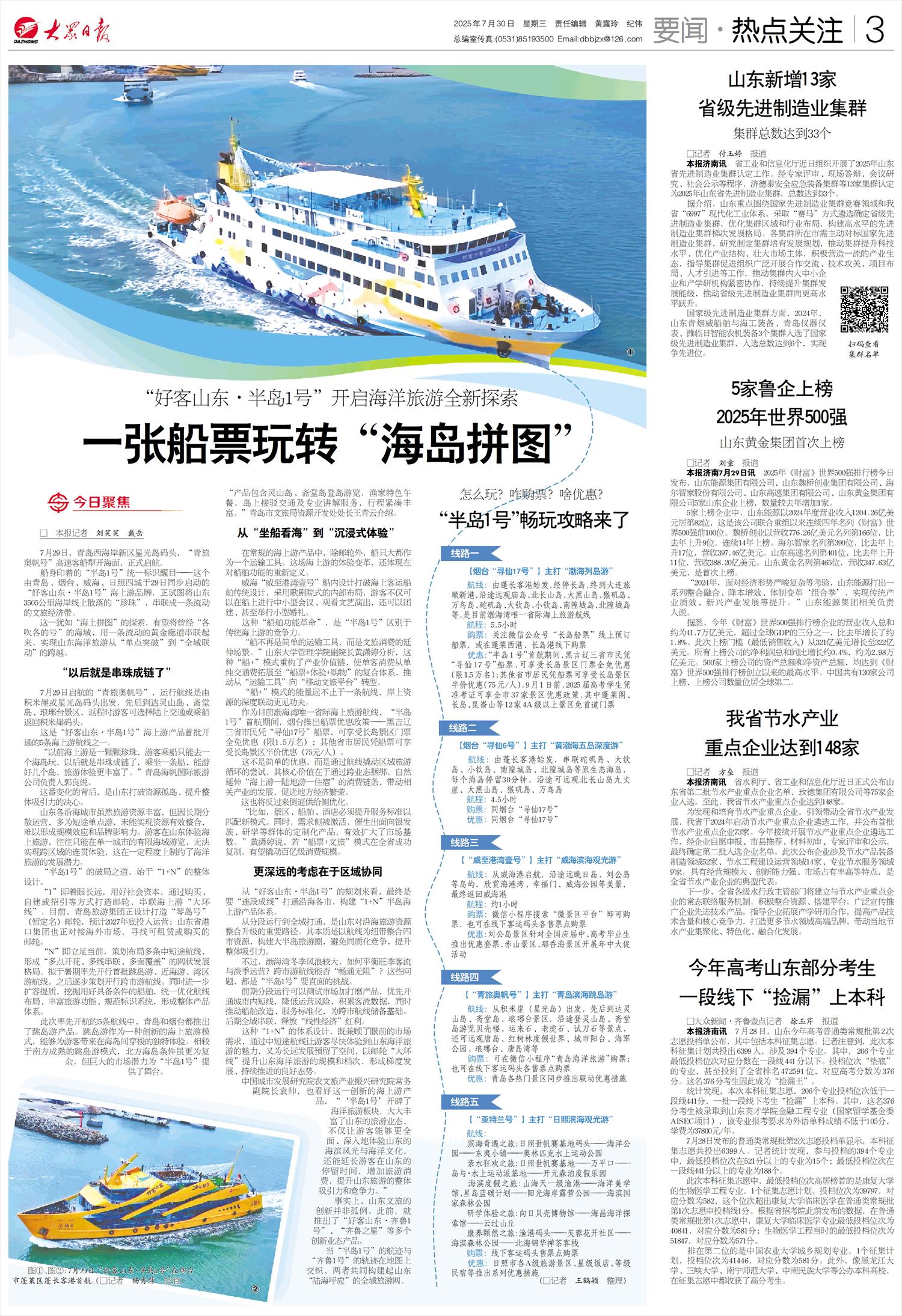 當“半島1號”的航跡與“齊魯1號”的軌跡在地圖上交織,兩者共同構建起山東“陸海呼應”的全域旅游網。