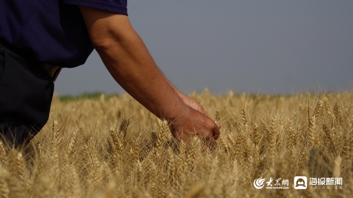 在永安鎮(zhèn)前七村的麥田里,聯(lián)合收割機(jī)來(lái)回穿梭。田兆山抓起一把麥粒向記者展示:“你看這麥粒多么飽滿!以前這里的土地泛著白堿,種什么都不長(zhǎng),現(xiàn)在卻變成了‘金土地’。這3000畝土地,主要種植‘濟(jì)麥60’,整體來(lái)看,今年和去年的表現(xiàn)相當(dāng),預(yù)計(jì)畝產(chǎn)也能達(dá)到500多公斤。”