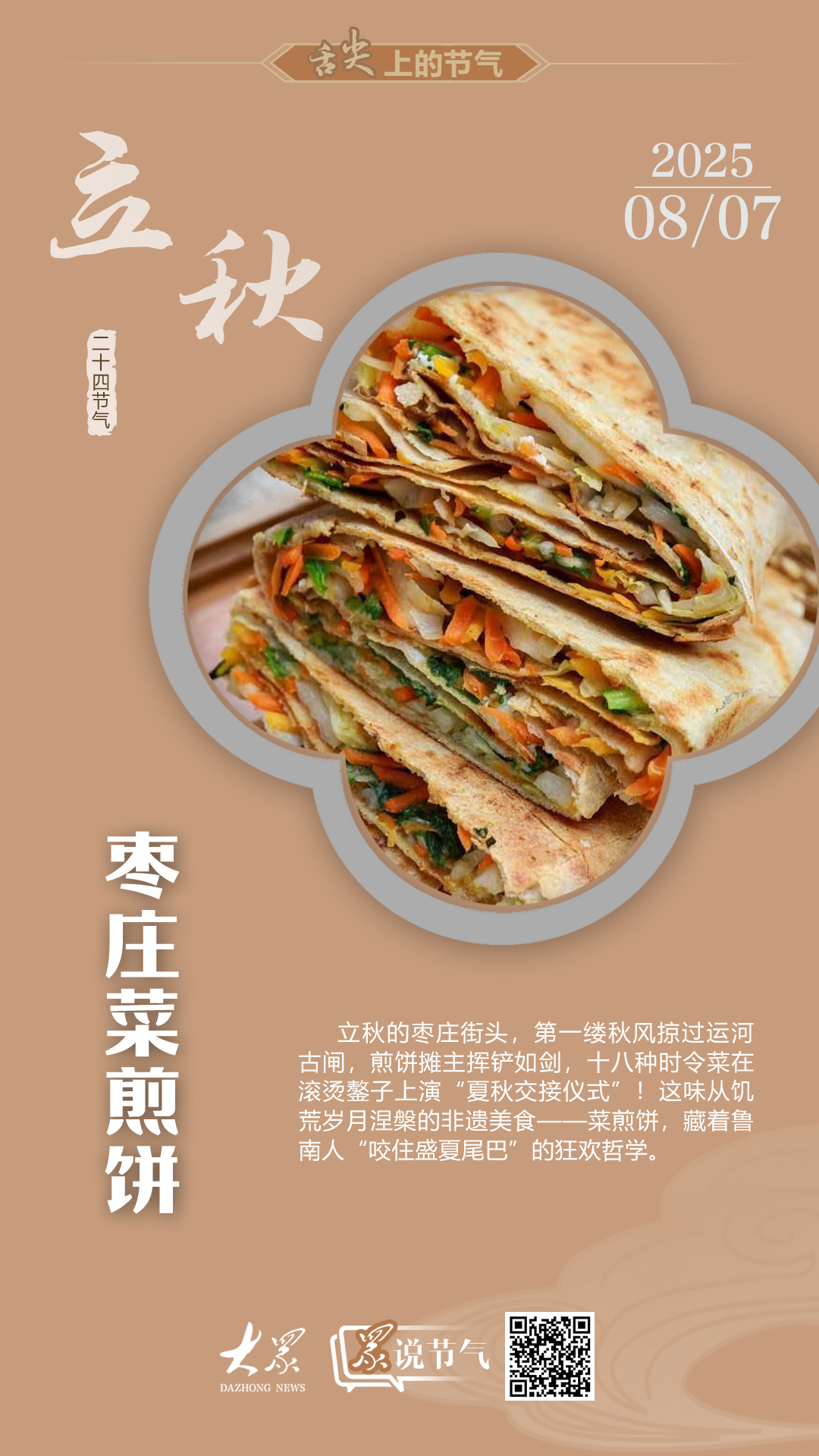 當別處立秋啃西瓜時,棗莊人選擇用菜煎餅完成季節(jié)交割。這方寸之間的酥脆濃香,成為運河畔永不散場的盛夏告別禮。