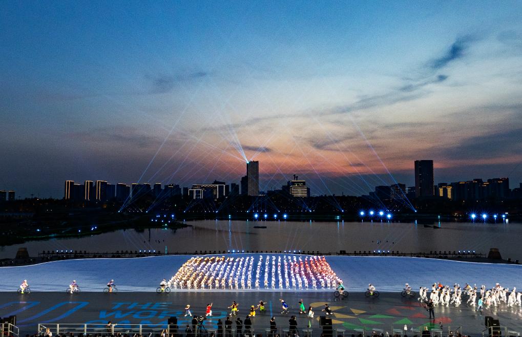 新華社成都8月7日電(記者王君寶 馬思嘉 陳地)7日,成都世運(yùn)會舉行開幕式,場地依托城市中軸線旁“天府之檐”搭設(shè)觀眾席,中心舞臺南、北兩側(cè)為市民開放觀演區(qū),現(xiàn)場巧借城市天際線、湖面和綠地,立體呈現(xiàn)公園城市的生態(tài)樣貌,在開放的空間內(nèi)為觀眾展示出一幅繽紛畫卷,呈現(xiàn)出六大亮點(diǎn)。