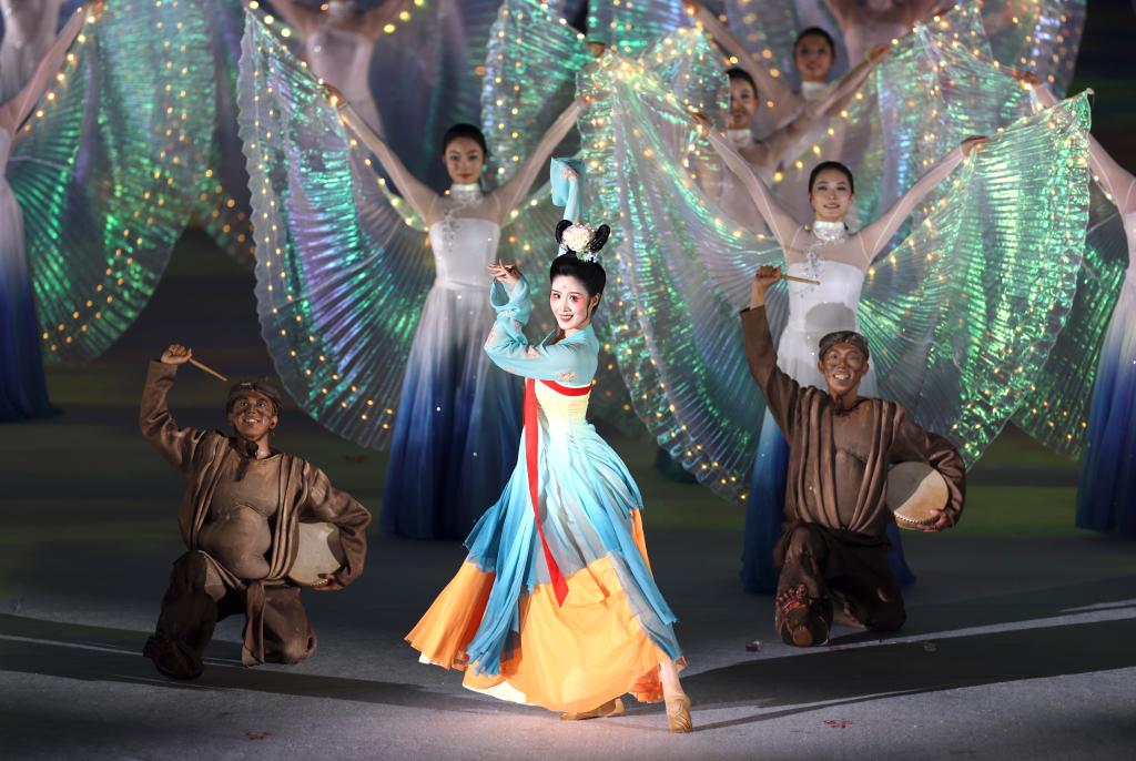 8月7日,演員在開幕式現(xiàn)場表演。新華社記者 陳益宸 攝
