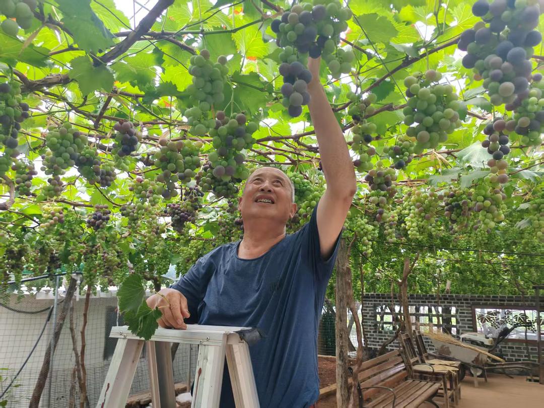 夏日升騰,陽光穿透層疊枝葉,棗莊市山亭區(qū)北莊鎮(zhèn)洪門村的葡萄架下響起沙沙聲。