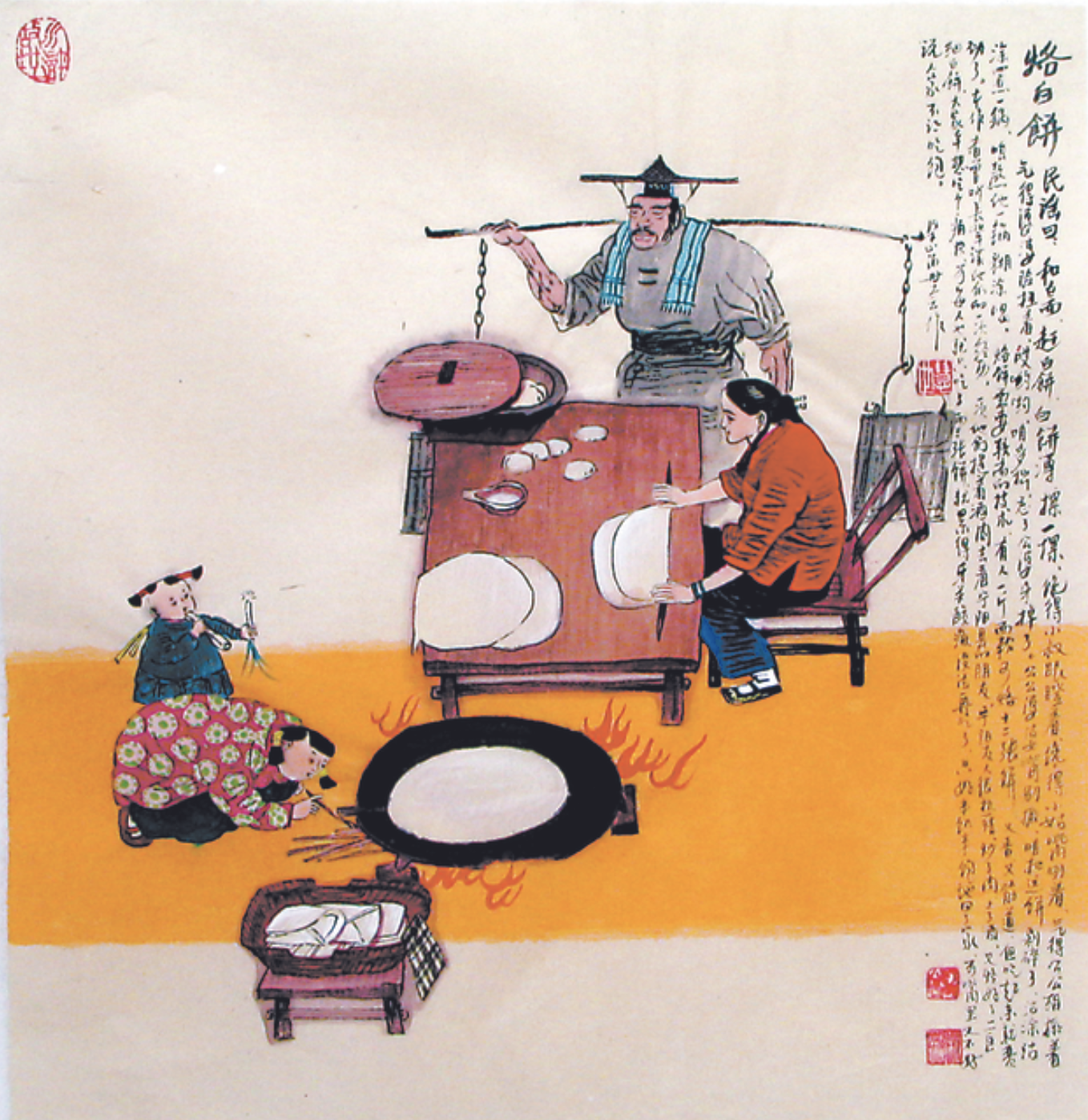 民謠曰:和白面,烙白餅,白餅薄,摞一摞,饞得小叔嘴咧著,饞得小姑眼瞪著,氣得公公胡撅著,煩得婆婆臉扭著。哎喲喲,咱多拙,忘了公婆牙掉了。公公婆婆嘴別撅,咱把這餅剁碎了,咕咕嘟嘟煮一鍋,熬成一鍋糊涂喝。