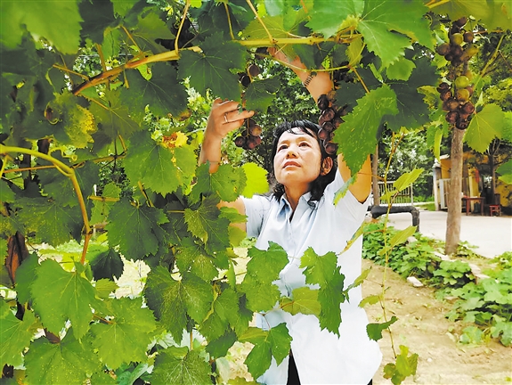 工作之余,李翠閣在院里的空閑區(qū)域翻地打畦,撒種上季節(jié)菜,桃樹初果期整枝打杈,為過(guò)于茂密的石榴疏果剪技。
