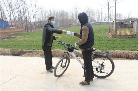 張洪領(lǐng)將白存柱的捐款安排給機(jī)關(guān)人員,為群眾買口罩。