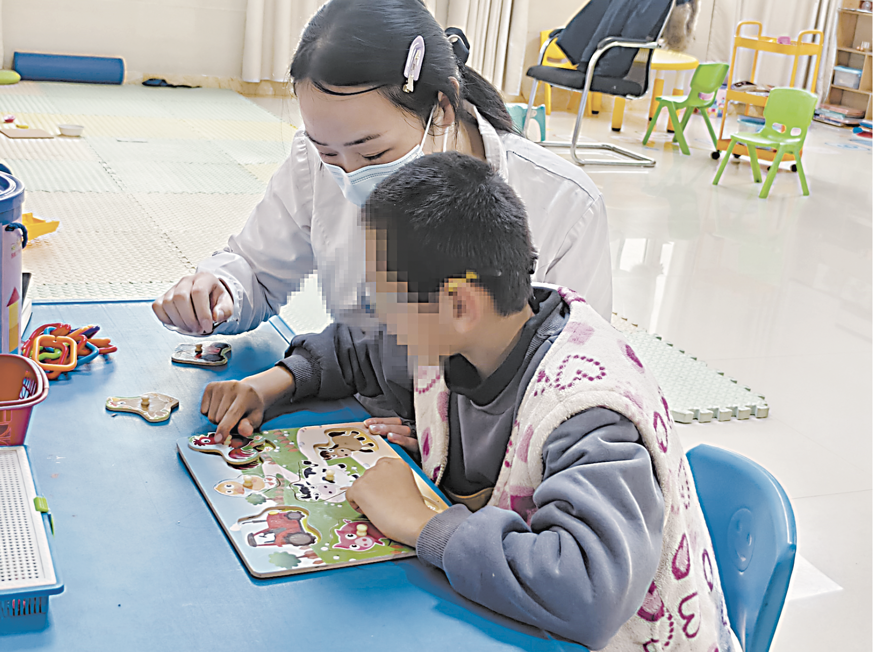“天,天氣的天,熱火朝天的天……”12月11日,在菏澤市殘疾兒童定點(diǎn)康復(fù)醫(yī)院之一的菏澤海吉亞醫(yī)院康復(fù)科,康復(fù)治療師鄧金蕊正在耐心教玉玉(化名)認(rèn)字、發(fā)音。