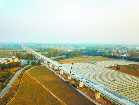 11月16日,在魯南高鐵菏澤至曲阜段QHTJ-4標(biāo)施工現(xiàn)場,工人們在橋面進(jìn)行無砟軌道鋼筋綁扎施工作業(yè)。目前,菏曲段橋梁主體工程全部完工,已全面轉(zhuǎn)入無砟軌道施工和橋面系施工階段。菏澤至蘭考段制梁施工完成1005榀,占總設(shè)計(jì)量的82.2%;架梁完成824榀,占總量的67.4%;連續(xù)梁施工共11處,已完成8處,剩余3處連續(xù)梁計(jì)劃于12月上旬全部完成。無砟軌道和橋面系施工正在同步交叉進(jìn)行。