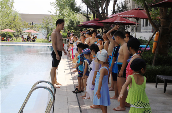 7月24日上午,“泳抱湛藍(lán)”——2021中達(dá)綠城·江南里“海豚計(jì)劃”啟動(dòng)儀式舉行。據(jù)了解,“海豚計(jì)劃”是綠城園區(qū)生活服務(wù)的重要活動(dòng)之一,旨在讓所有綠城小業(yè)主都能學(xué)會(huì)游泳,掌握一項(xiàng)生存技能。13年來(lái),全國(guó)共有70余座城市、170多個(gè)園區(qū)、15萬(wàn)名小業(yè)主學(xué)會(huì)了游泳。物業(yè)負(fù)責(zé)人李慶坡介紹,培訓(xùn)期間,他們將在園區(qū)大門防衛(wèi)、社區(qū)泳池的安全看護(hù)、淋浴間看護(hù)等全程為小業(yè)主提供服務(wù),特別是會(huì)嚴(yán)格對(duì)泳池每日消毒檢測(cè)、保證水溫等各項(xiàng)指標(biāo)安全,并做好環(huán)境衛(wèi)生清理及消殺防疫等工作。圖為中達(dá)綠城·江南里小業(yè)主認(rèn)真聽教練講解游泳注意事項(xiàng)。記者 李亞楠 攝