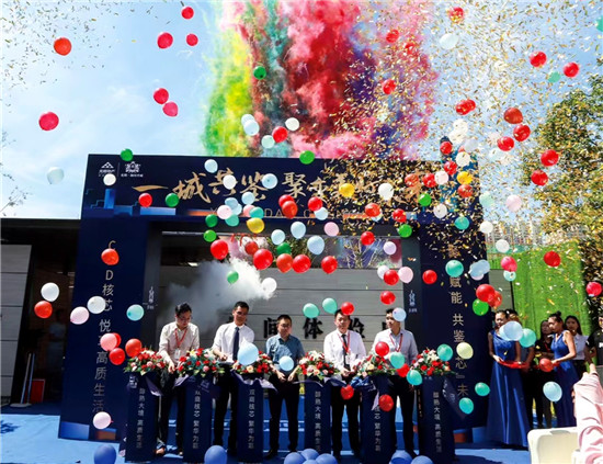 7月24日,光明御河丹城臻品樣板間璀璨綻放,吸引了眾多客戶前來一睹其華麗風(fēng)采。匠心打造的樣板間南北通透、格調(diào)優(yōu)雅、美輪美奐,每一處細節(jié)都彰顯著精益求精的品質(zhì),整體風(fēng)格在追求簡潔的同時又保持著華麗的氣質(zhì),營造出獨具歸屬感的生活氛圍。很多客戶在看完樣板房后,紛紛表示心動不已。此外,光明御河丹城項目西鄰著名景區(qū)曹州牡丹園,東依趙王河景觀帶,可為業(yè)主帶來自然與繁華隨心切換的尊崇享受。圖為項目方有關(guān)領(lǐng)導(dǎo)共同上臺為樣板間開放剪彩。