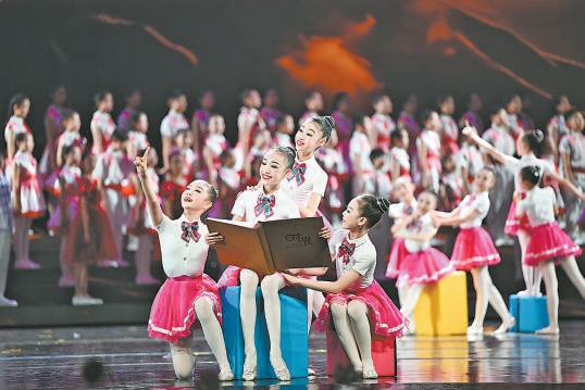 演出由中國宋慶齡基金會(huì)、中國福利會(huì)、國家大劇院共同主辦,北京市教育委員會(huì)、中國青少年宮協(xié)會(huì)、北京京劇院支持。圍繞“我和祖國一起成長”的主題,“如日之升·如月之恒”“美美與共·琴瑟和鳴”“翩翩少年·灼灼其華”“薪火相承·筑夢未來”4個(gè)篇章層層遞進(jìn),融匯合唱朗誦、戲曲舞蹈、器樂演奏、武術(shù)雜技、非遺文化展示等多種藝術(shù)形式。開場秀《少年強(qiáng)則中國強(qiáng)》薈萃中國大鼓、武術(shù)、舞龍、舞獅,朝氣蓬勃;舞蹈詩朗誦《離騷·少年志》把詩意融入舞蹈,綻放強(qiáng)烈的愛國主義光芒;雜技劇《如日凌風(fēng)》藝術(shù)化呈現(xiàn)“神舟飛天、蛟龍入?!钡目茖W(xué)探索精神;戲劇《硝煙中的燭光》展現(xiàn)宋慶齡為爭取國際友好力量支持中國人民抗戰(zhàn)的場景,以及創(chuàng)辦戰(zhàn)時(shí)兒童保育院、用生命守護(hù)國家希望的感人故事……