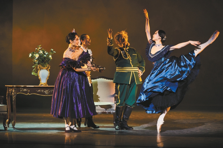 1936年由葛麗泰·嘉寶主演的電影《茶花女》中有一個(gè)十分動(dòng)人的小細(xì)節(jié),阿爾芒在劇院初見茶花女,對其一見傾心,奈何公爵攜她離去。阿爾芒站在她離開前的位置,撿起了她遺落的手套,待再次重逢時(shí)掏出獻(xiàn)予佳人。無需多言,情意便了然,他早已是她的裙下臣。類似此般細(xì)節(jié)在舞劇中沒能見到,是為一種遺憾。(趙晨 供圖/上海芭蕾舞團(tuán))