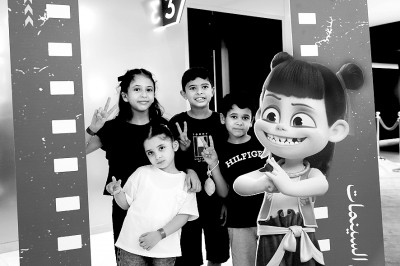 在沙特阿拉伯利雅得,觀眾在《哪吒之魔童鬧?!返男麄髡拱迮耘恼樟裟睢P氯A社發(fā)