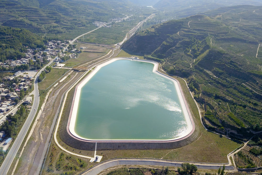 這是2021年9月8日在甘肅省天水市拍攝的引洮供水工程楊家灣調蓄水池(無人機照片)。新華社記者 范培珅 攝