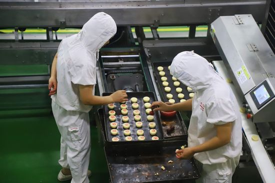 在月餅加工車間,自動(dòng)生產(chǎn)線高效運(yùn)轉(zhuǎn),員工們身著工作服,嚴(yán)格按照操作流程進(jìn)行制作生產(chǎn)。制作間、烘焙間、回涼間、包裝間,各車間環(huán)環(huán)相扣、協(xié)同運(yùn)作,一個(gè)個(gè)小巧精致的月餅新鮮出爐,香氣四溢。