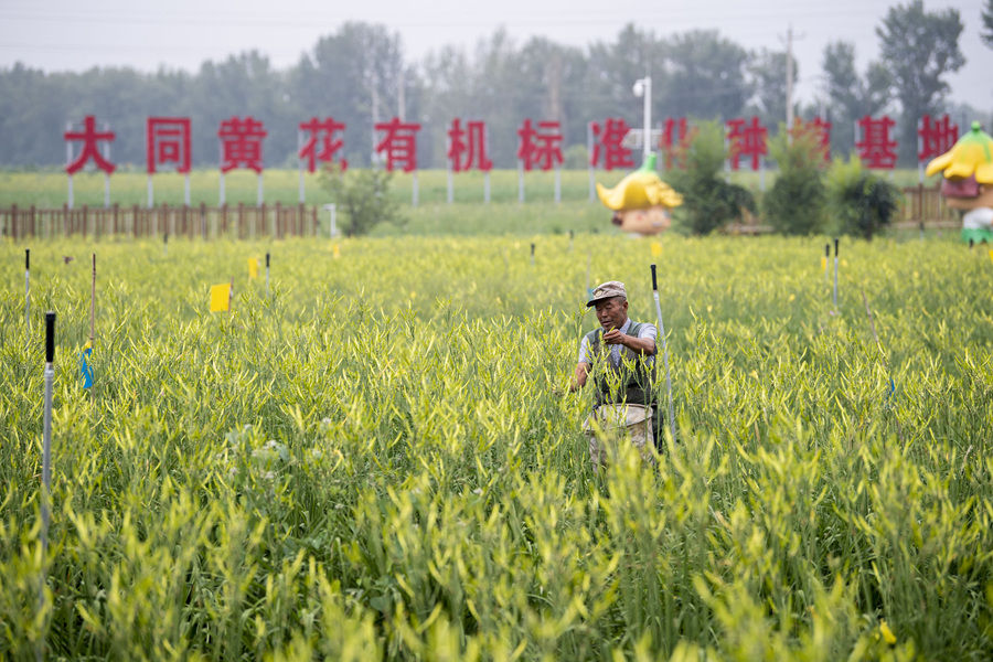 那次考察期間,習近平總書記來到大同市云州區(qū)有機黃花標準化種植基地。