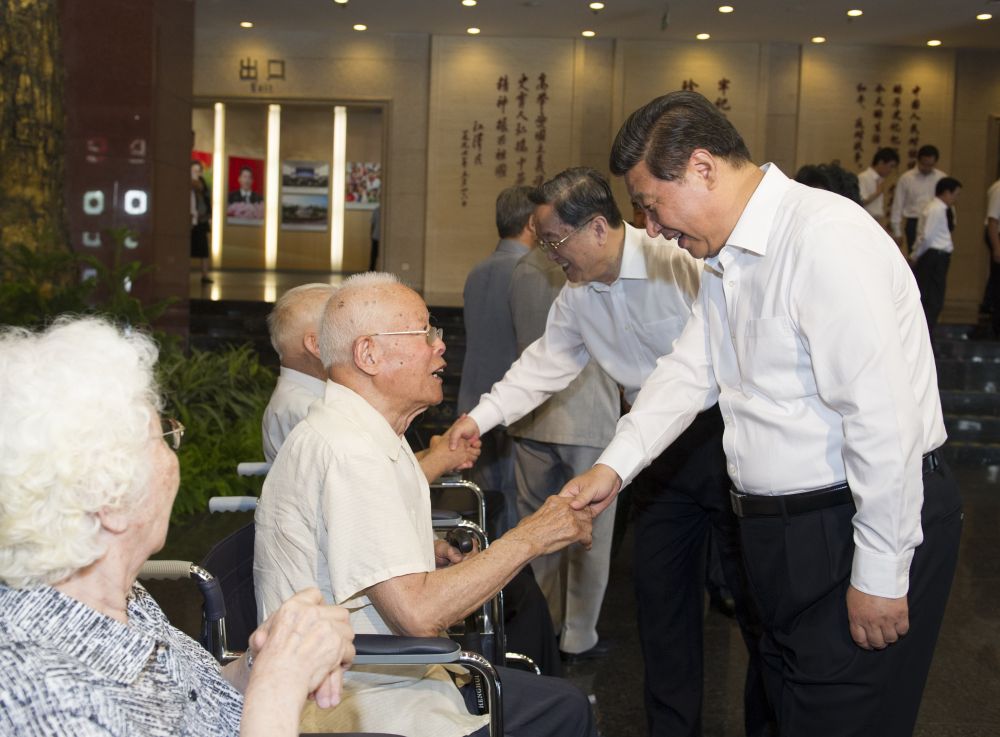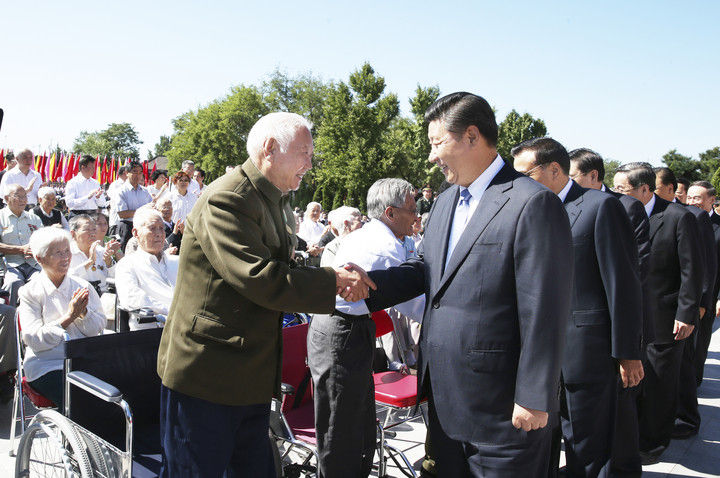 黨的十八大以來,習(xí)近平總書記多次看望慰問抗戰(zhàn)老英雄,考察參觀抗戰(zhàn)紀(jì)念地。傾心交談、莊嚴(yán)授勛、敬獻(xiàn)花籃、參觀展覽……每一項安排,每一個動作,都飽含對英雄前輩的崇高敬意,對犧牲英烈的深切緬懷,對壯闊歷史的深刻銘記,引領(lǐng)全黨全社會弘揚偉大抗戰(zhàn)精神。