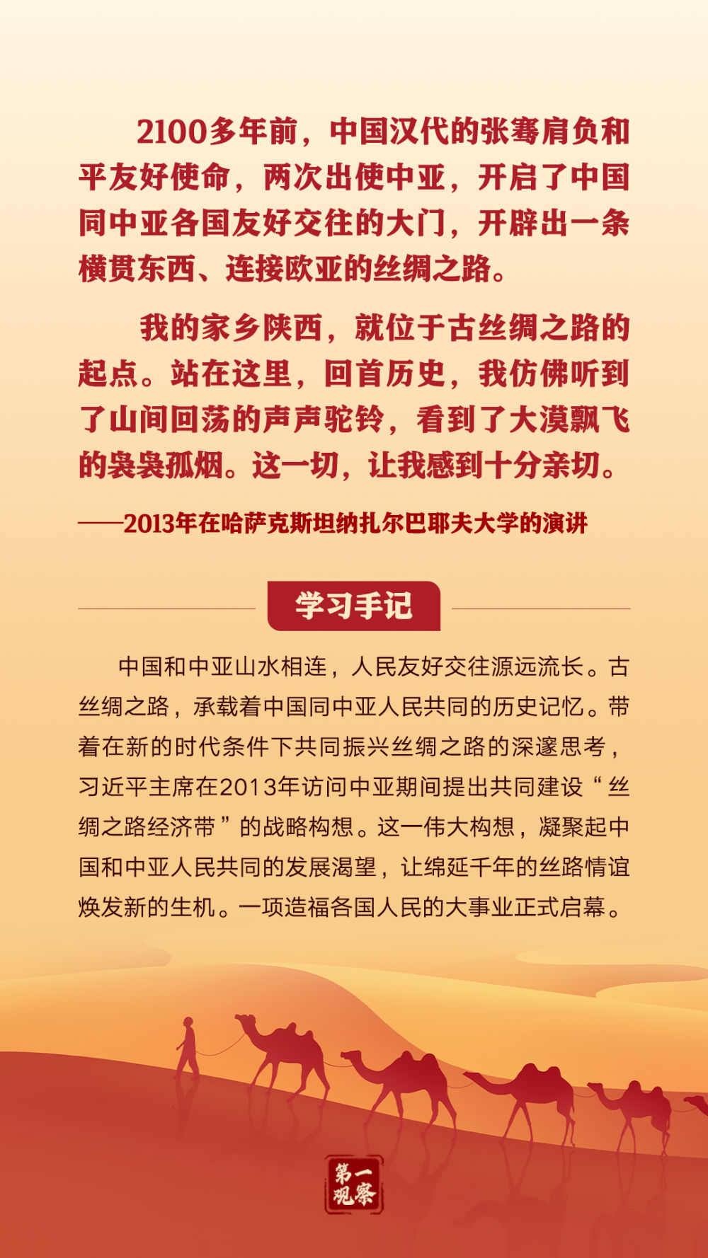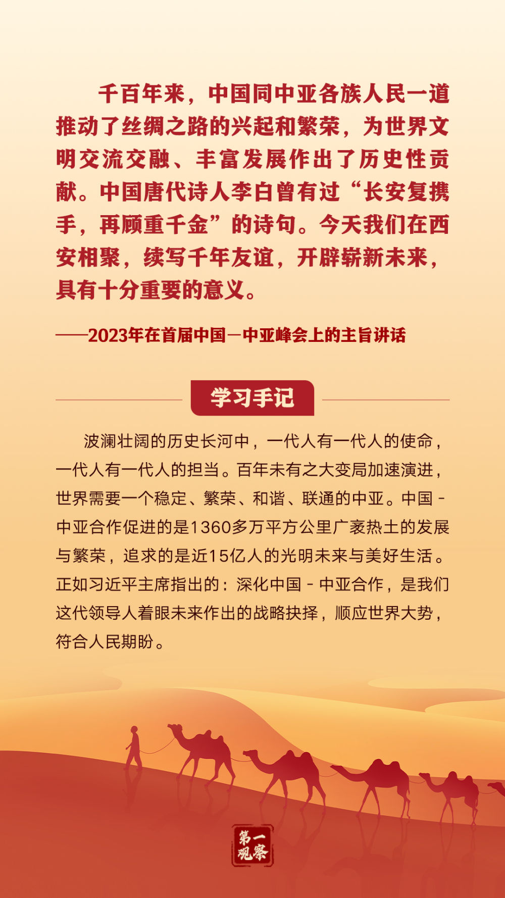 中國與中亞,友好交往綿延2000多年。2023年,首屆中國-中亞峰會在西安舉行,習(xí)近平主席同中亞五國元首相聚在古絲綢之路的起點(diǎn),續(xù)寫千年友誼,開辟嶄新未來。