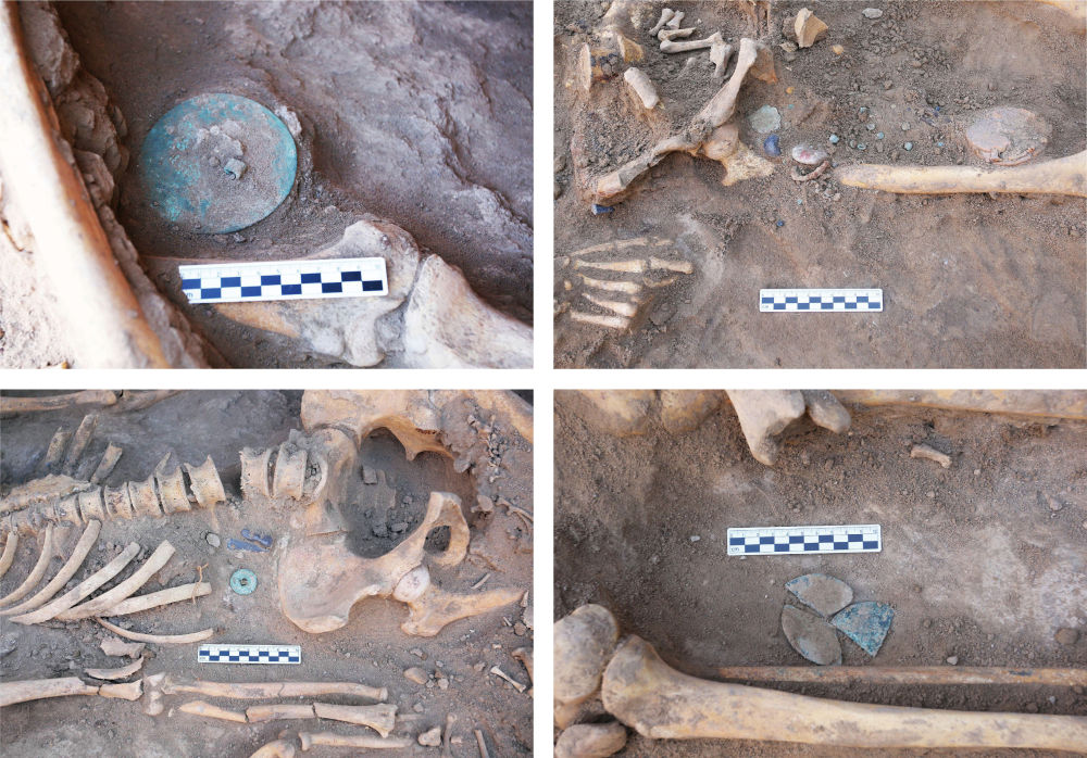 烏茲別克斯坦蒙扎鐵佩遺址M7隨葬品出土情況(拼版資料照片)。2024年,中烏聯(lián)合考古隊在蒙扎鐵佩遺址考古發(fā)掘取得了重要收獲。2025年2月,“中國社會科學(xué)院考古學(xué)論壇·2024年中國考古新發(fā)現(xiàn)”在北京中國歷史研究院舉行。論壇上公布了由中國社會科學(xué)院考古研究所中亞考古隊參與發(fā)掘的烏茲別克斯坦蒙扎鐵佩遺址考古成果。新華社發(fā)(考古雜志社供圖)
