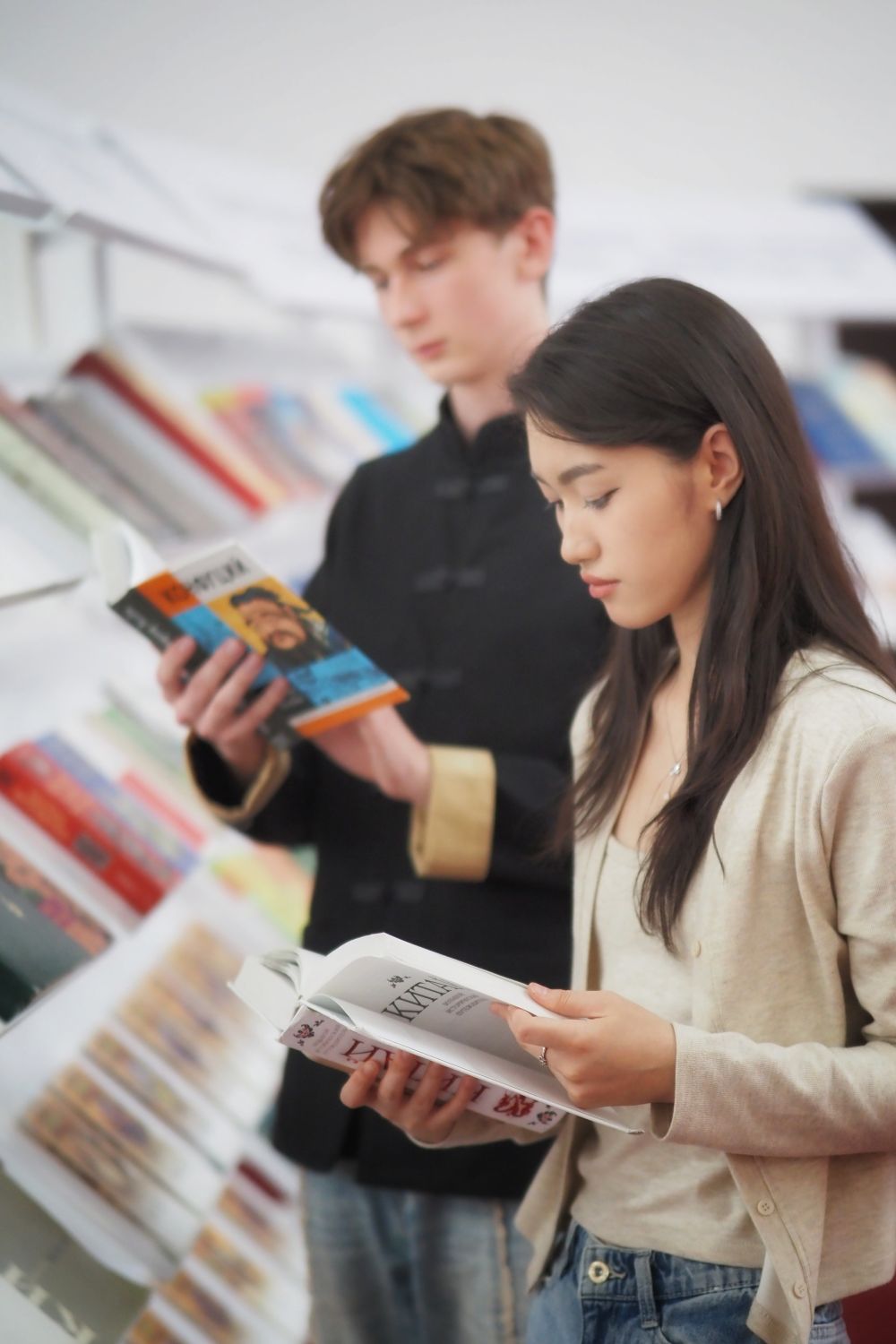 2025年5月31日,在哈薩克斯坦法拉比國立大學(xué),學(xué)生在“中國絲路文學(xué)周”活動現(xiàn)場閱讀圖書。2025哈薩克斯坦“中國絲路文學(xué)周”開幕式暨“絲路新韻:文學(xué)讓生活更美好”主題作家座談會在哈薩克斯坦法拉比國立大學(xué)成功舉辦。后續(xù),還將有多場文學(xué)交流活動在哈薩克斯坦主要城市舉辦。