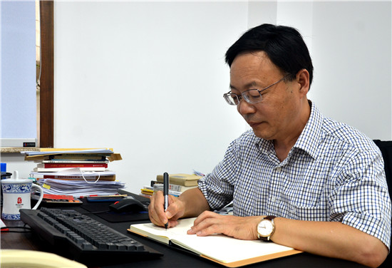 崔天舟在辦公室整理與考察團(tuán)交流的心得體會