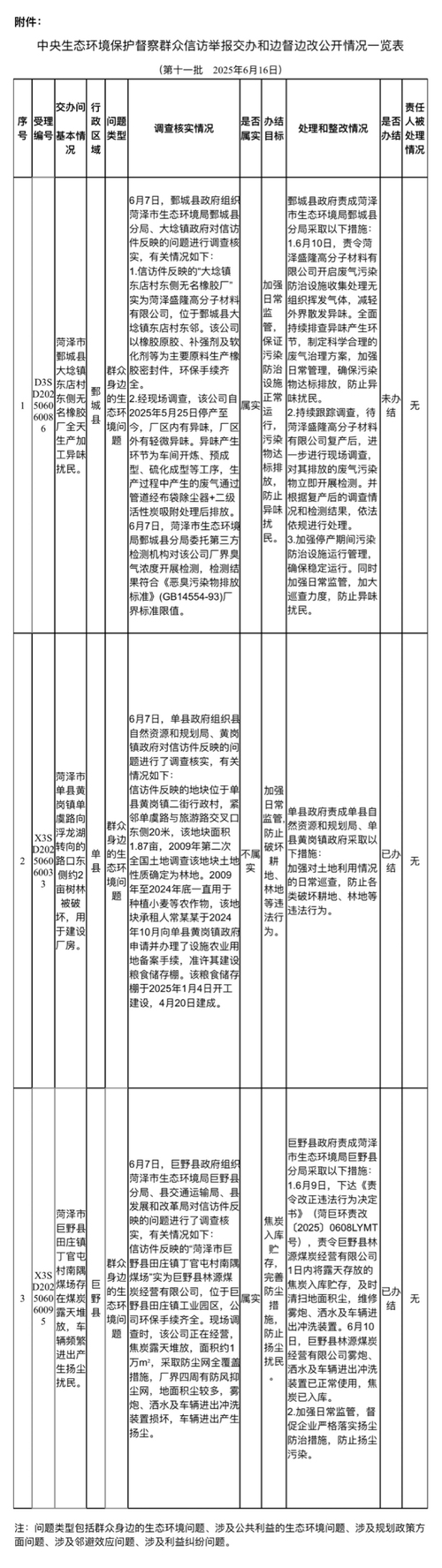 附件:中央生態(tài)環(huán)境保護(hù)督察群眾信訪舉報轉(zhuǎn)辦和邊督邊改公開情況一覽表(第十一批)
